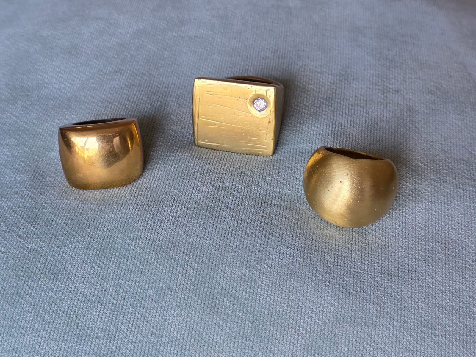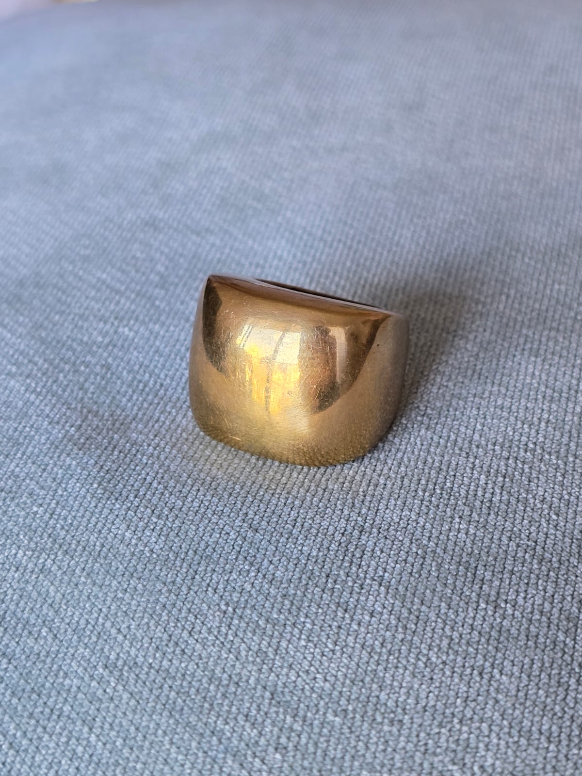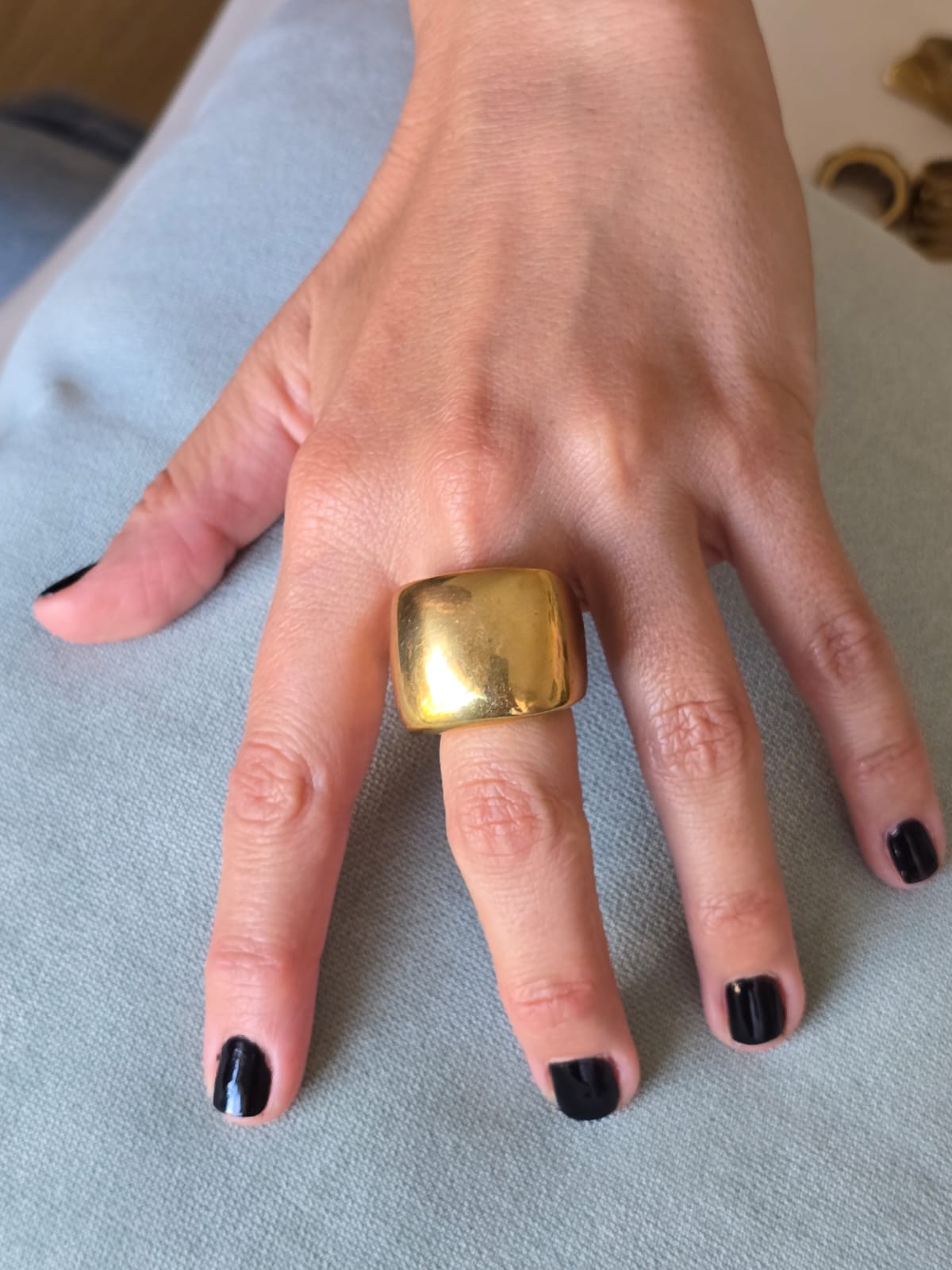 Nuestro anillo cuadrado de bronce con baño en oro es pura sofisticación y brillo. El diseño geométrico y moderno del anillo crea una pieza impresionante que atraerá todas las miradas