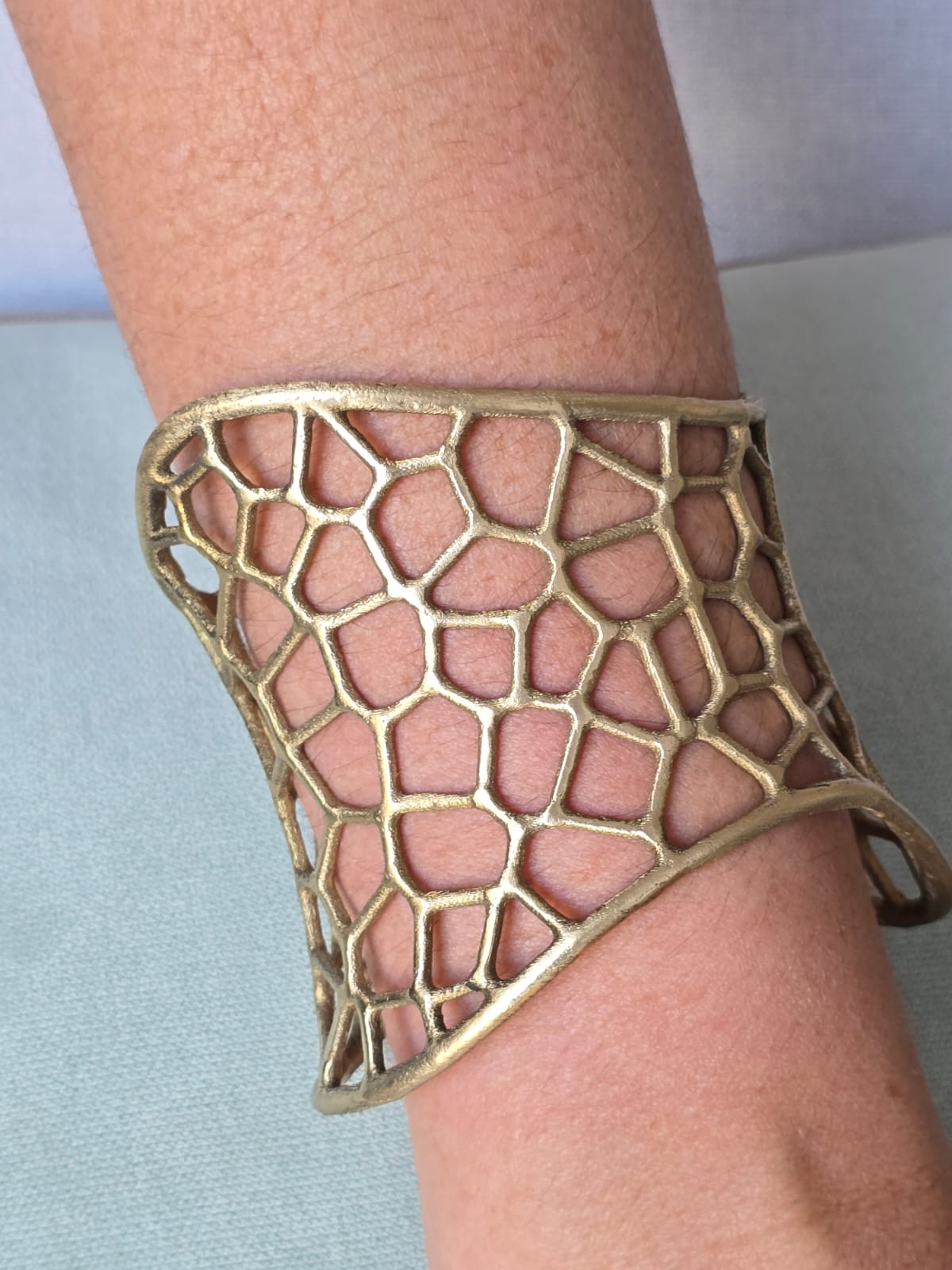 Perfecto para cualquier ocasión, desde reuniones casuales hasta eventos formales. Su estilo minimalista lo hace ideal para complementar cualquier outfit. Hecha en bronce texturada y calada