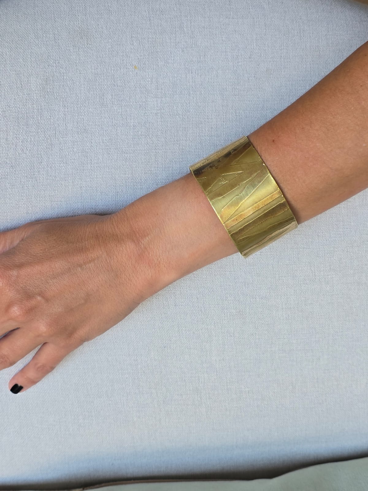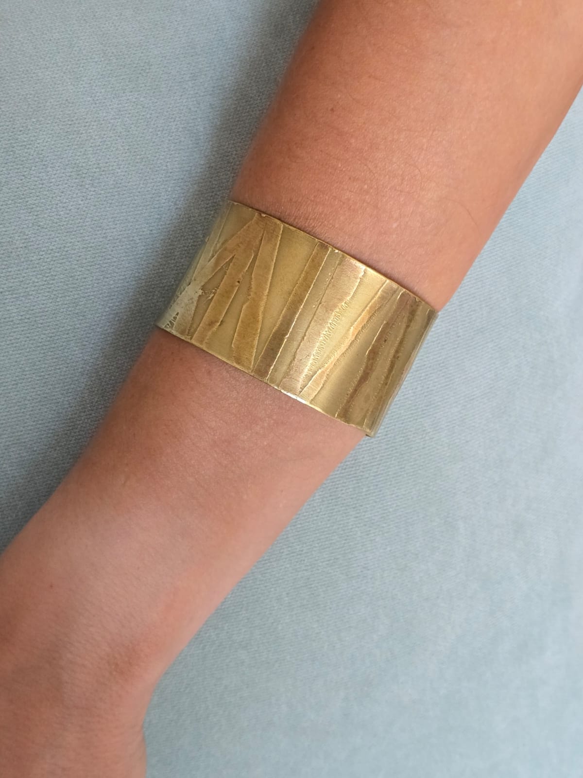 Perfecto para cualquier ocasión, desde reuniones casuales hasta eventos formales. Su estilo minimalista lo hace ideal para complementar cualquier outfit. Hecha en bronce texturizada con ácido para darle ese acabado perfecto