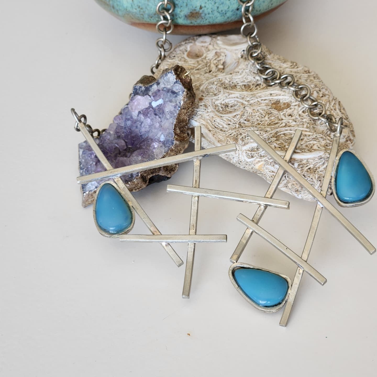Acá nuestro collar de piedras naturales y plata. Un diseño único que combina el brillo sutil de la plata con la energía y color de piedras cuidadosamente seleccionadas.