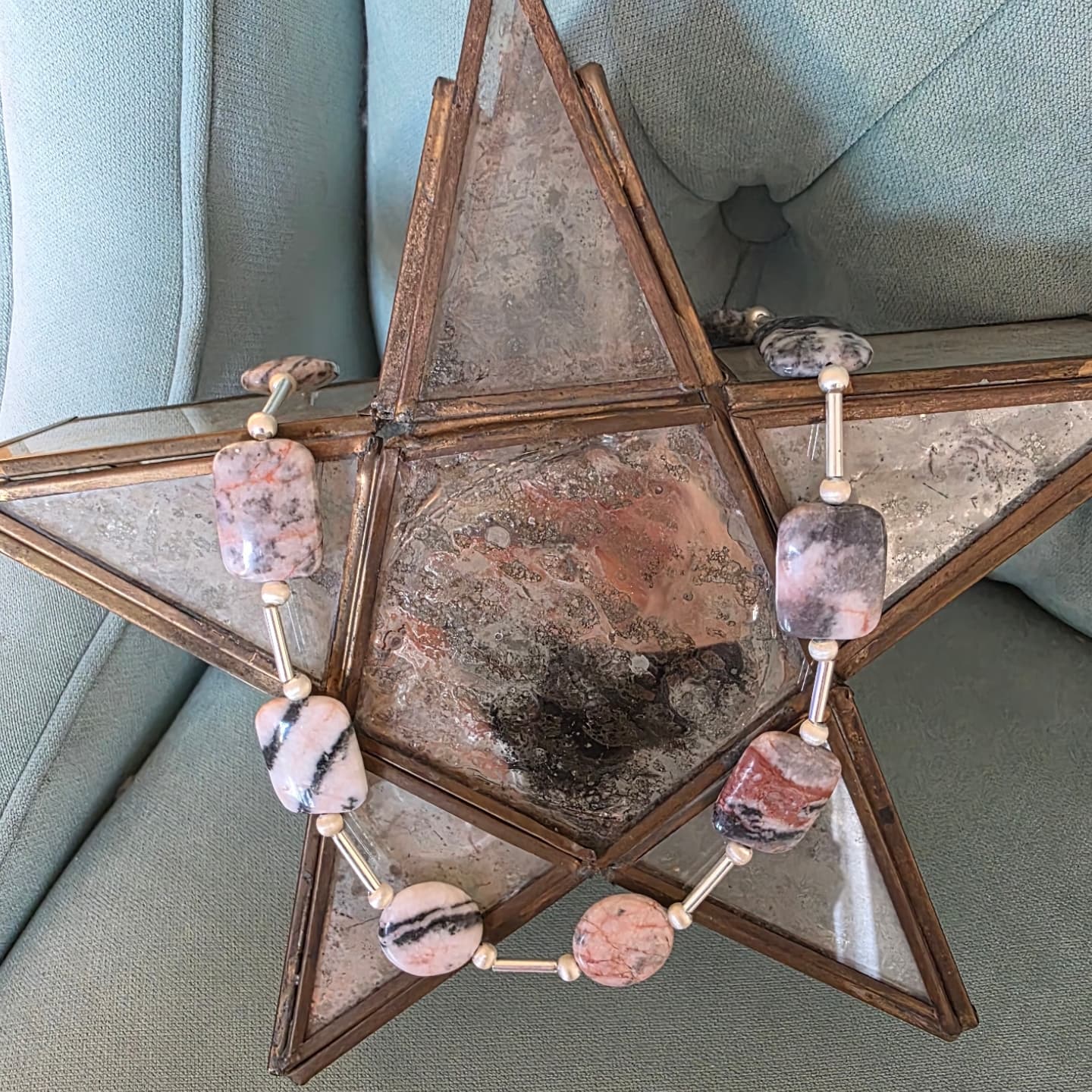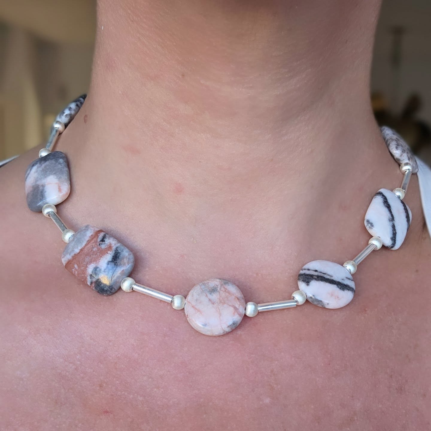 Cada piedra es cuidadosamente seleccionada por sus propiedades y su energía, creando una pieza única que no solo adorna tu cuello, sino que también te conecta con la armonía y la energía positiva que estas piedras aportan. El diseño, con delicadas fornituras de plata, resalta la elegancia atemporal de este accesorio, ideal para cualquier ocasión.