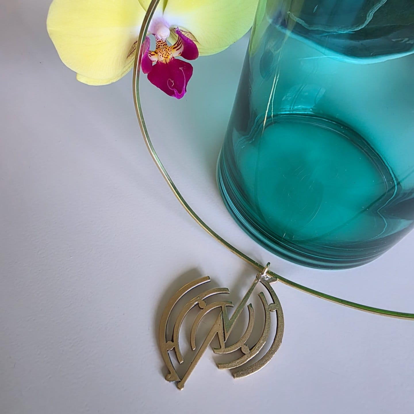 Imponente collar geométrico de diseño con collar rígido