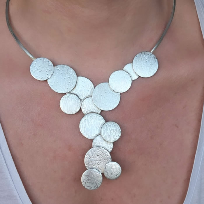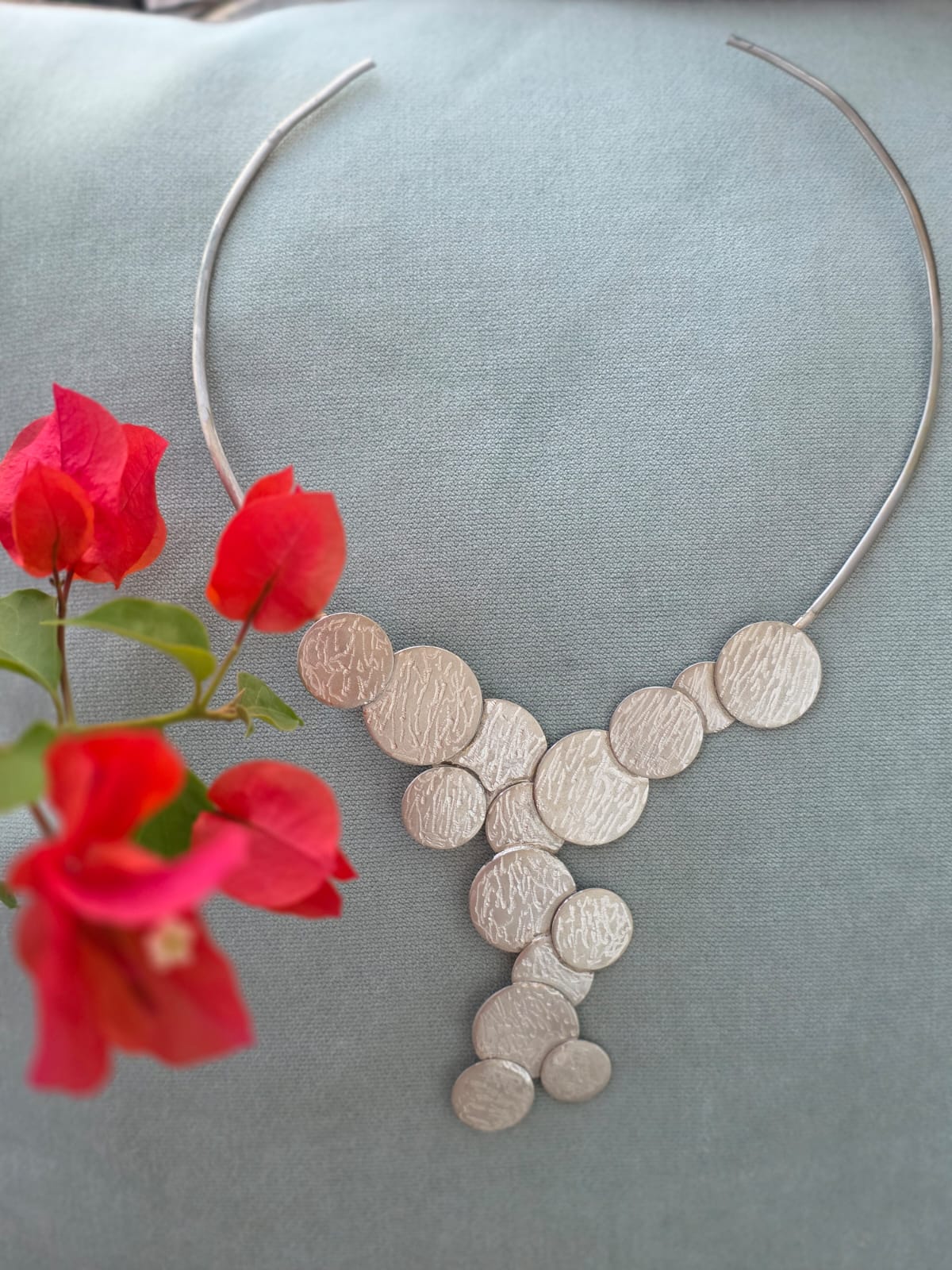 Este diseño único de forma minimalista crea una pieza de joyería que es tanto elegante como versátil. Perfecto para cualquier ocasión, este collar se adapta a tu estilo personal, añadiendo un toque contemporáneo y sofisticado a tu look. Realizado en alpaca baño plata